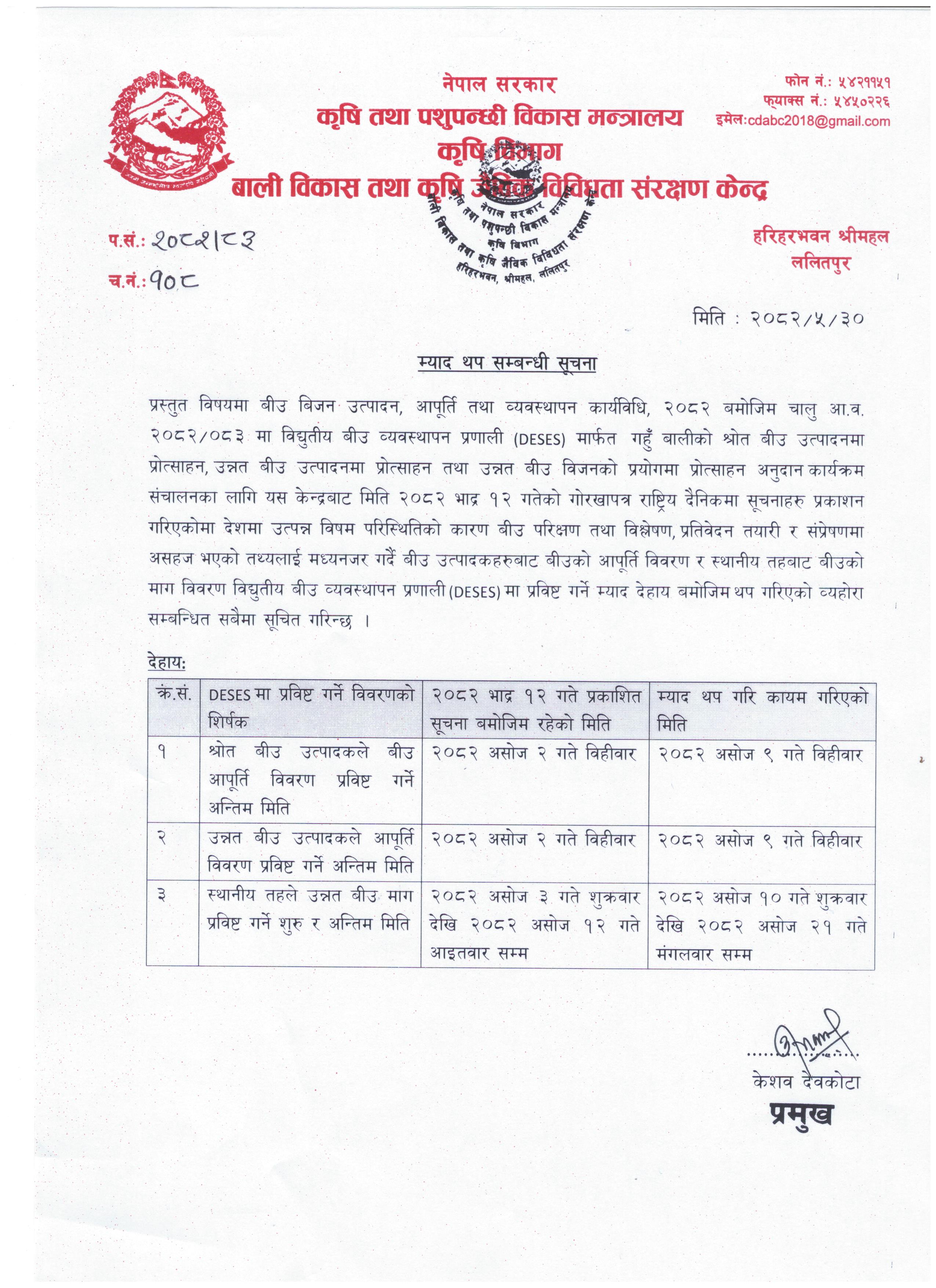 कार्यक्रम संचालनका लागि म्याद थप समबन्धी सूचना