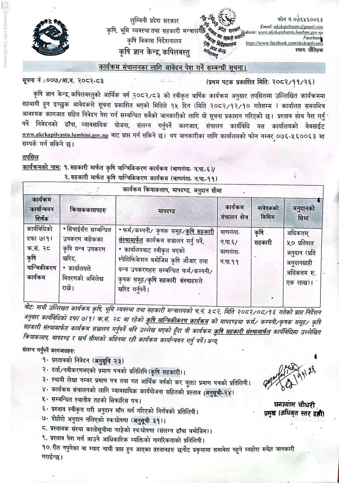 कृषि विकास निर्देशनालय, बुटवलको प्रस्ताव आह्वान सम्बन्धी सूचना